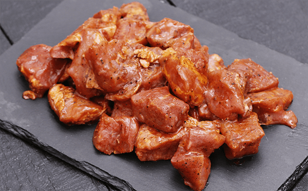 Boneless cuts of beef marinated in a rich tikka sauce